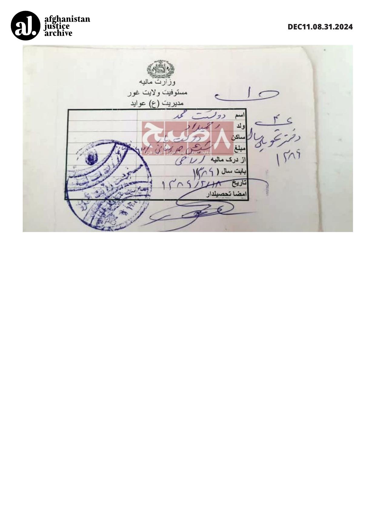 This directive—issued by the Taliban governor of Ghor in coordination with the Ministry of Tribal Affairs—constitutes a clear example of state-sanctioned arbitrary punishment and forced displacement. Despite a prior ruling by the Taliban's own religious council in favor of the affected families, the local governor and minister pressured the council to reverse its decision, overriding judicial consistency and undermining rule of law. The eviction of 600–800 families, many of whom have lived in the area for centuries, was carried out without legal due process, and under extreme conditions: families were prohibited from taking basic belongings or agricultural goods, stripping them of livelihood and dignity. The decree reflects both collective punishment and the use of coercive administrative power to resolve inter-tribal land disputes in favor of politically dominant groups. It raises serious concerns under international human rights law, especially in relation to property rights, access to justice, and protection against forced eviction without legal remedy.
