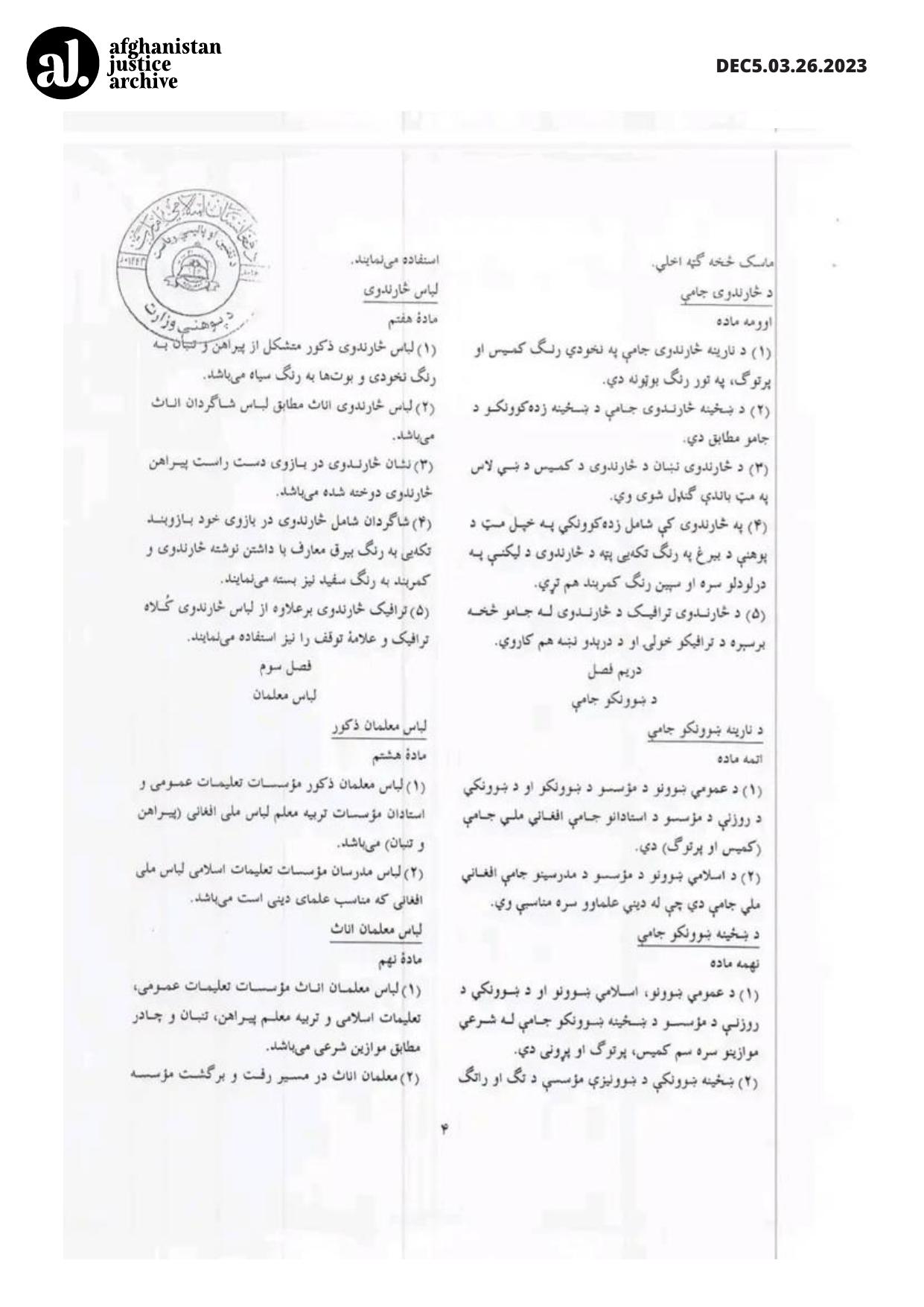 Subject: Request for opinion on the draft policy regarding uniforms in educational institutions.