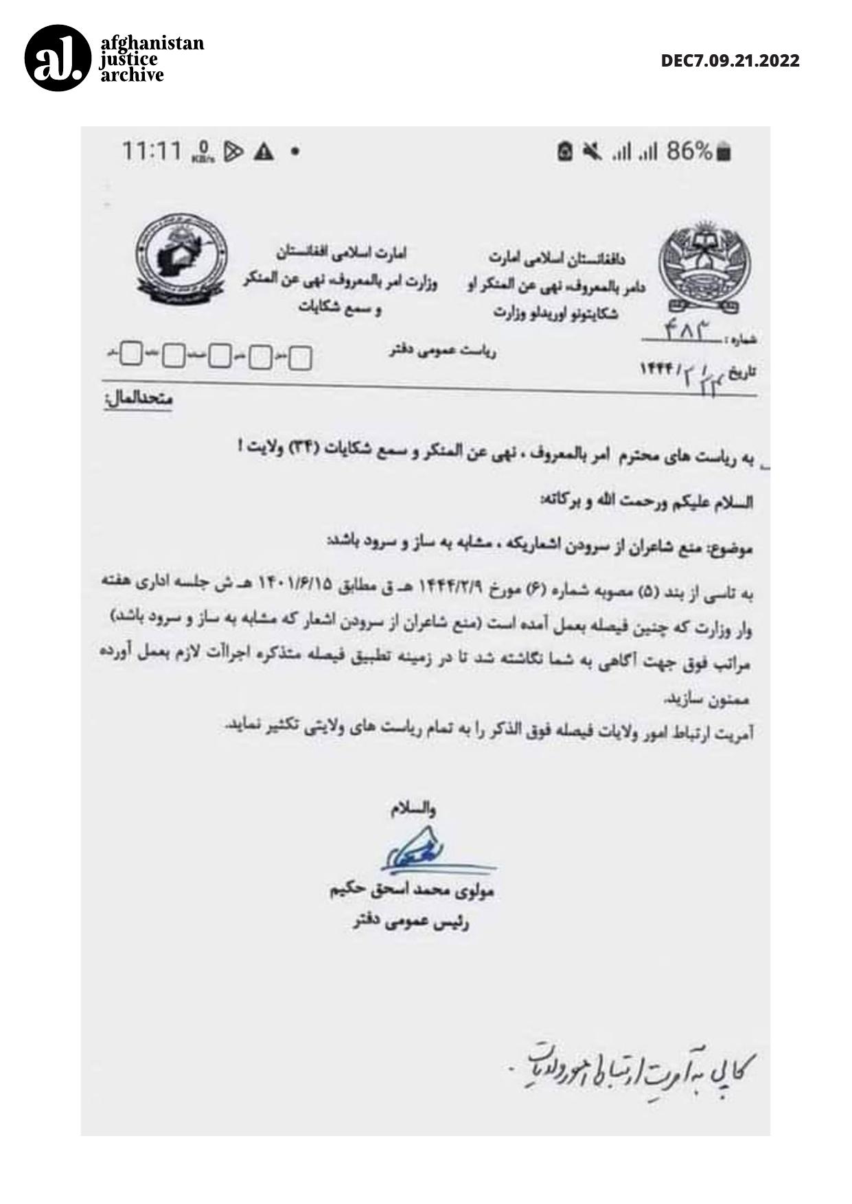 The Taliban’s ban on singing poems in musical form is a serious violation of international human rights obligations, especially regarding freedom of expression and cultural rights. It reflects a broader pattern of ideological repression aimed at silencing artistic and Cultural Rights in Afghanistan. Such measures not only stifle creativity but also erase vital forms of Afghan identity and resistance rooted in poetry and performance.